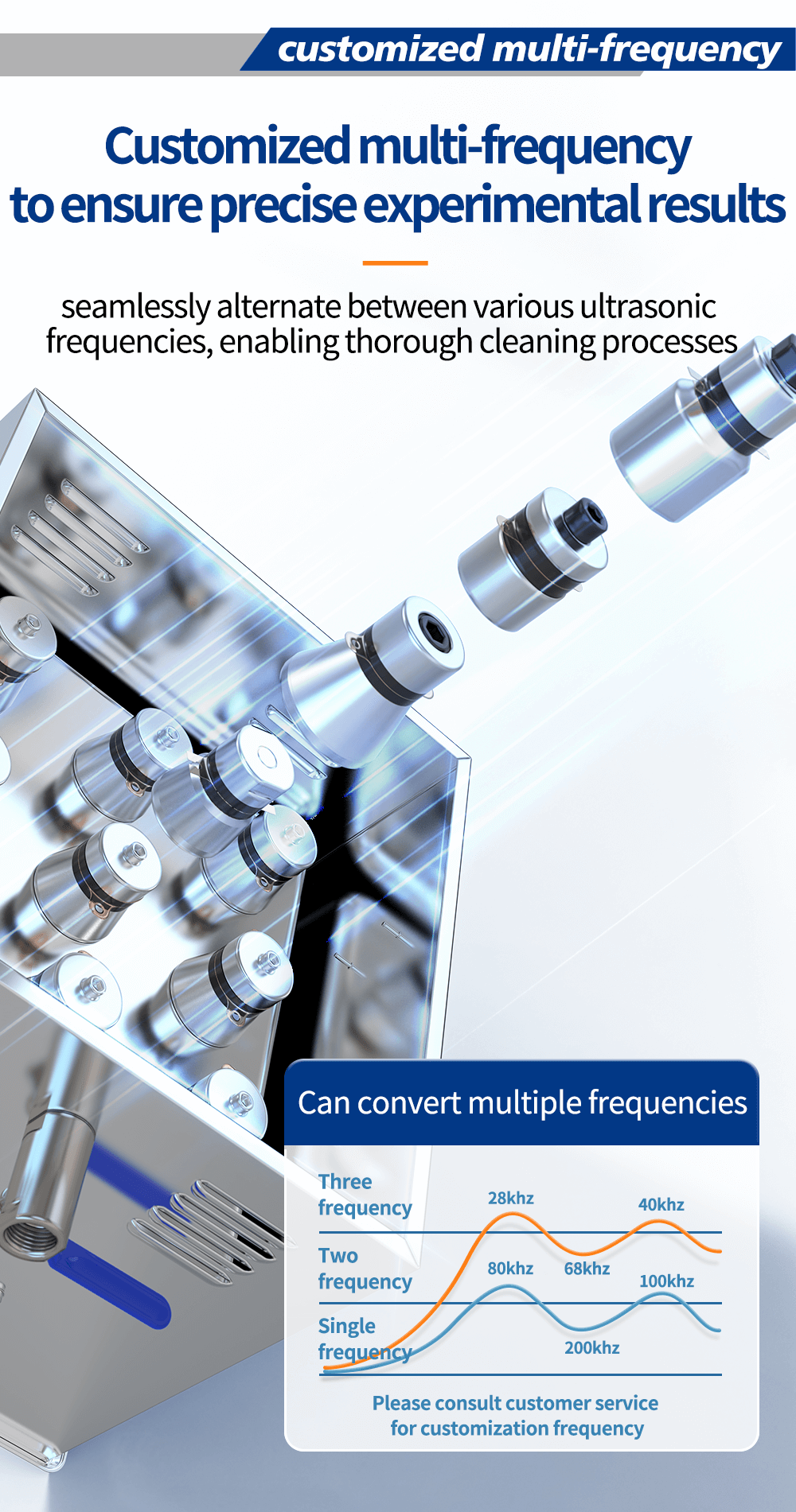 40/80/100/160kHz Quad-Frequency Ultrasonic Bath with Adjustable Power — Ideal for Cleaning Graphite Blocks, Fine Optics & Complex Labware